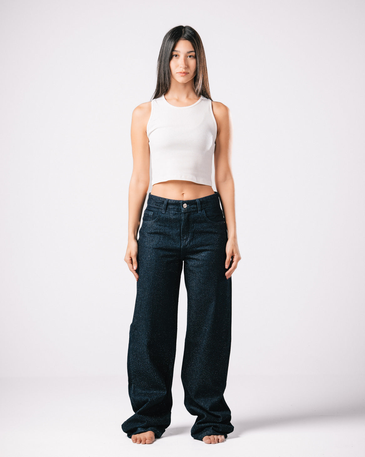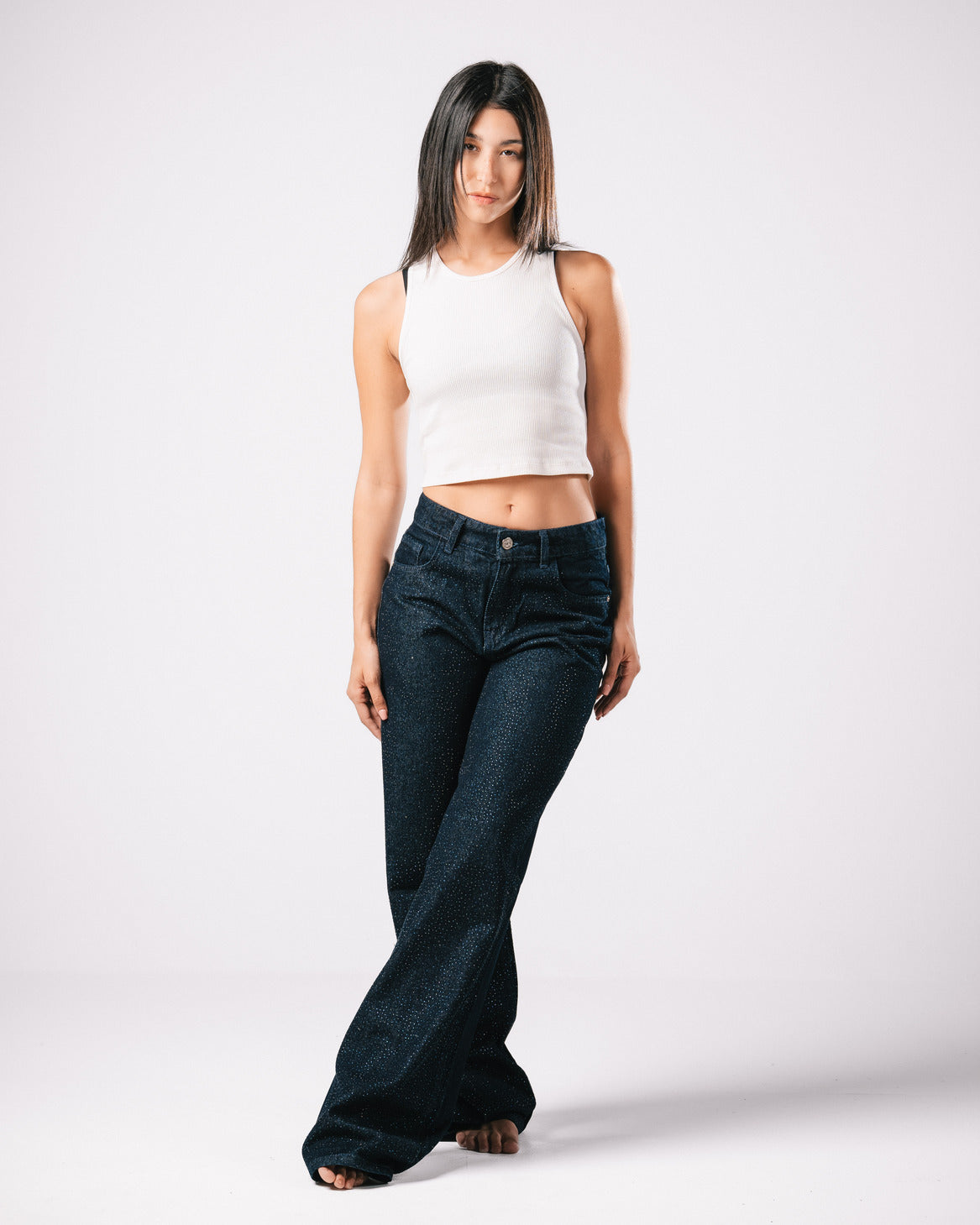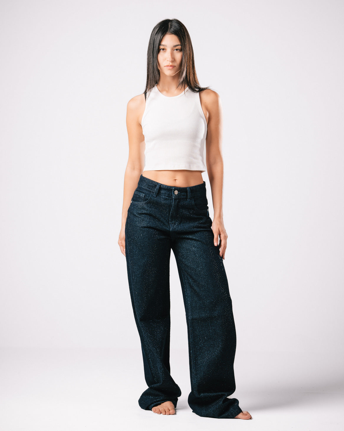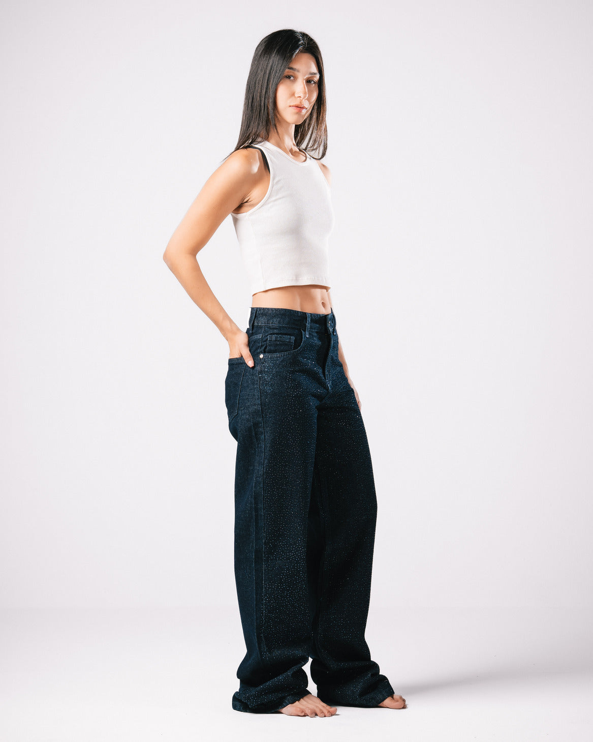 Introducing our Bling Denim Pants, where classic style meets modern sparkle.