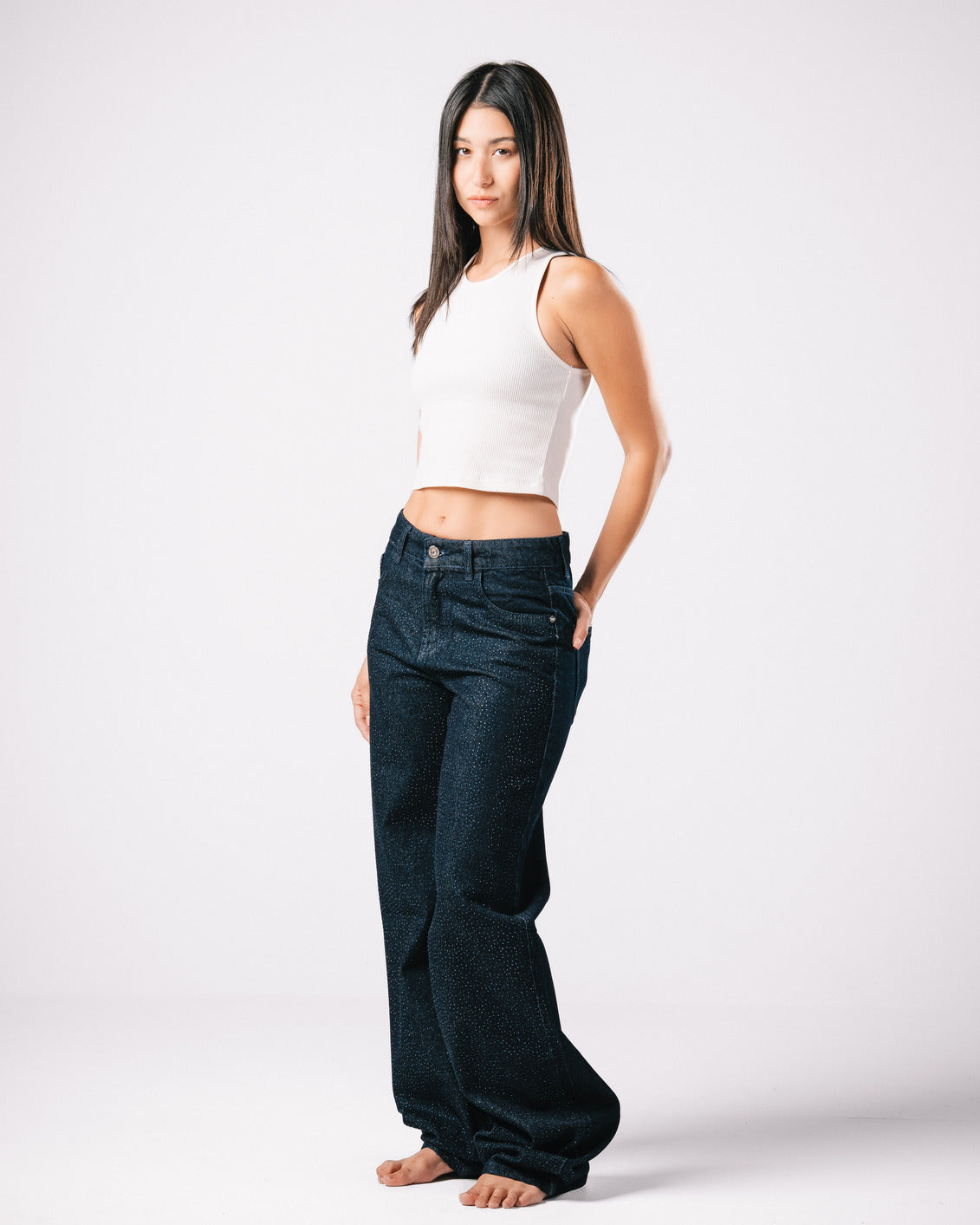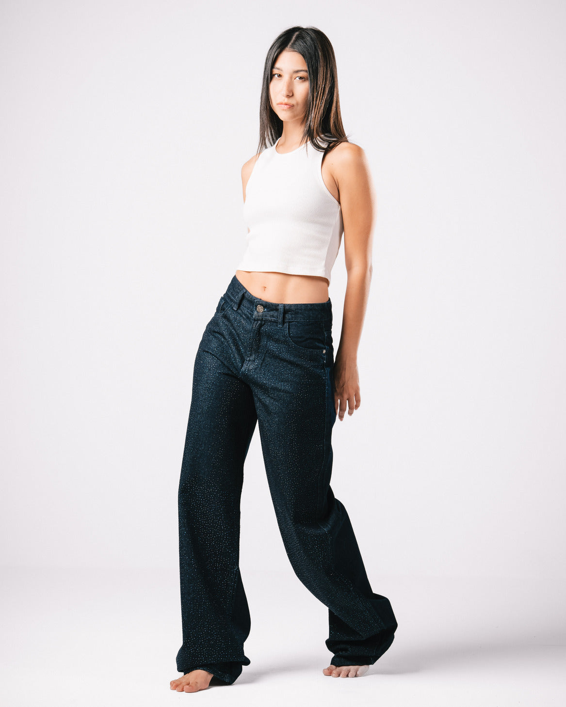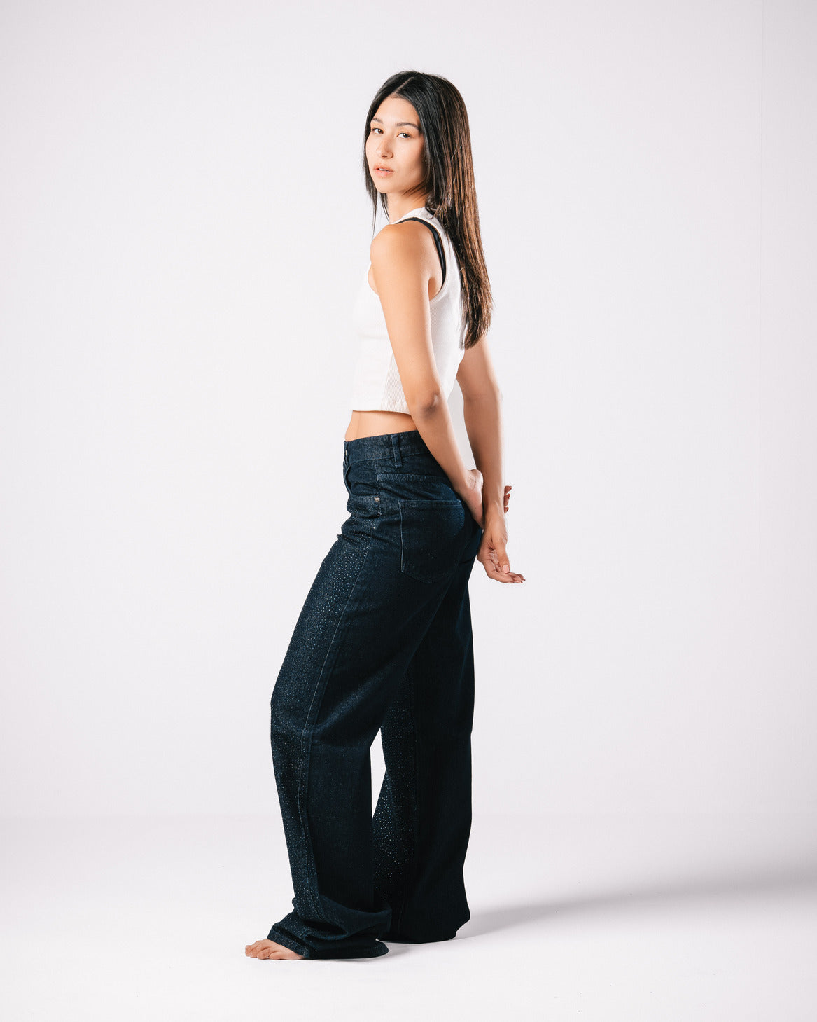 Introducing our Bling Denim Pants, where classic style meets modern sparkle.