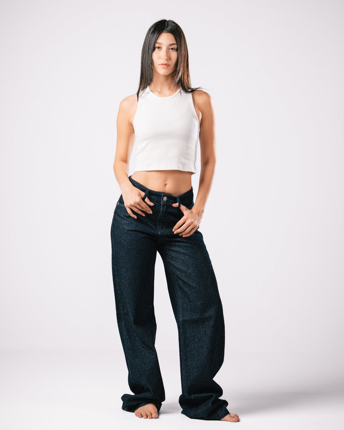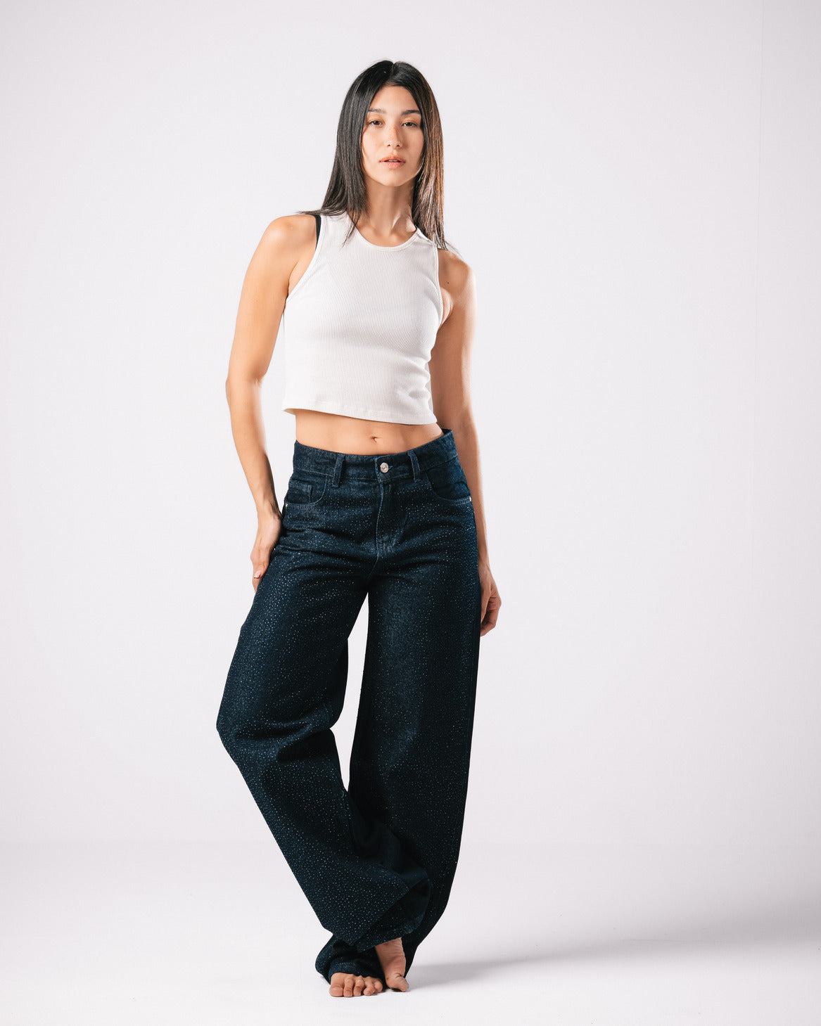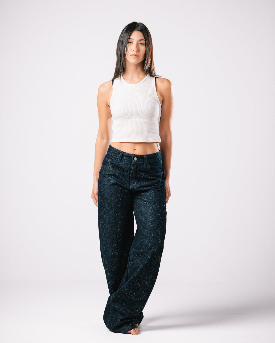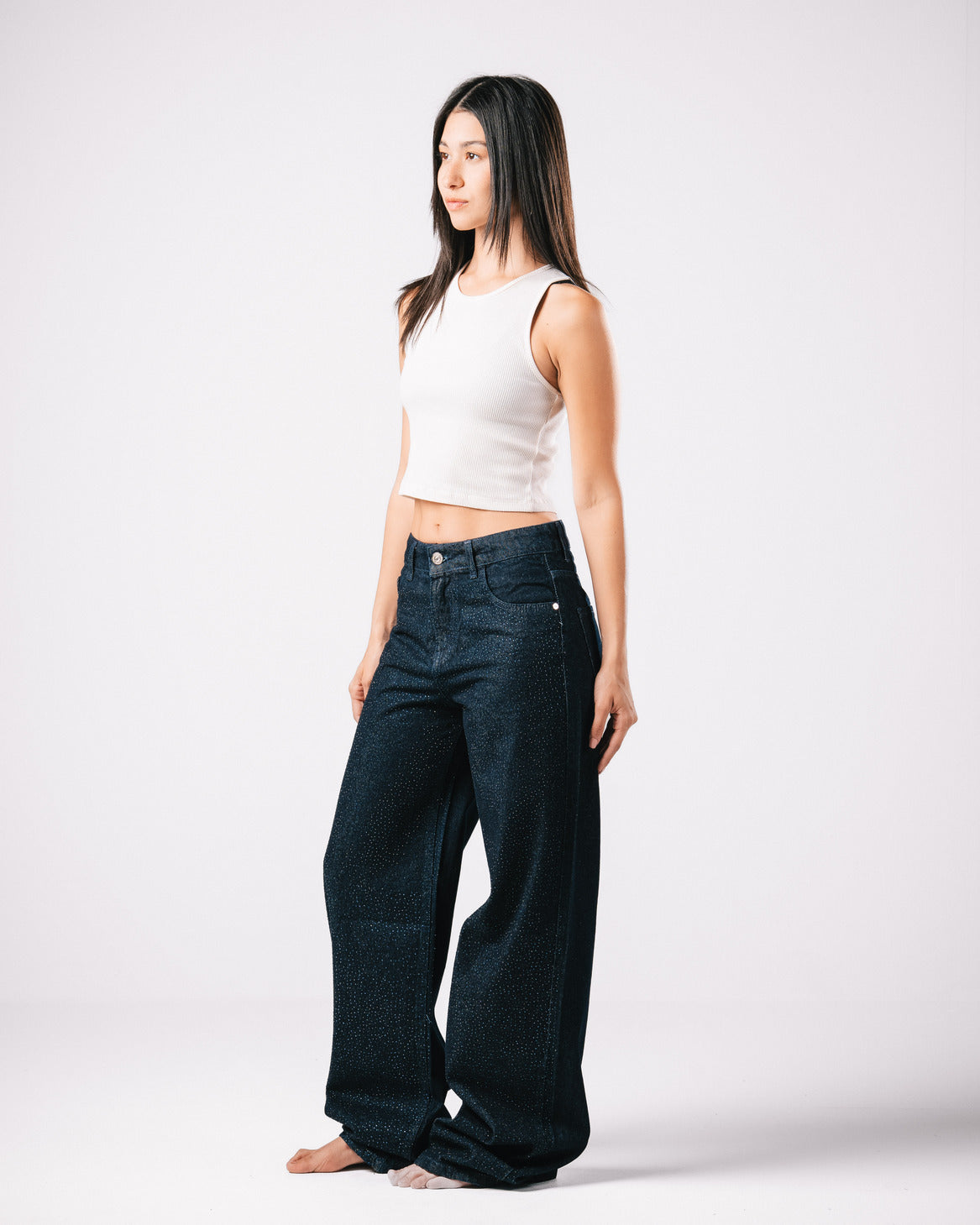 Introducing our Bling Denim Pants, where classic style meets modern sparkle.