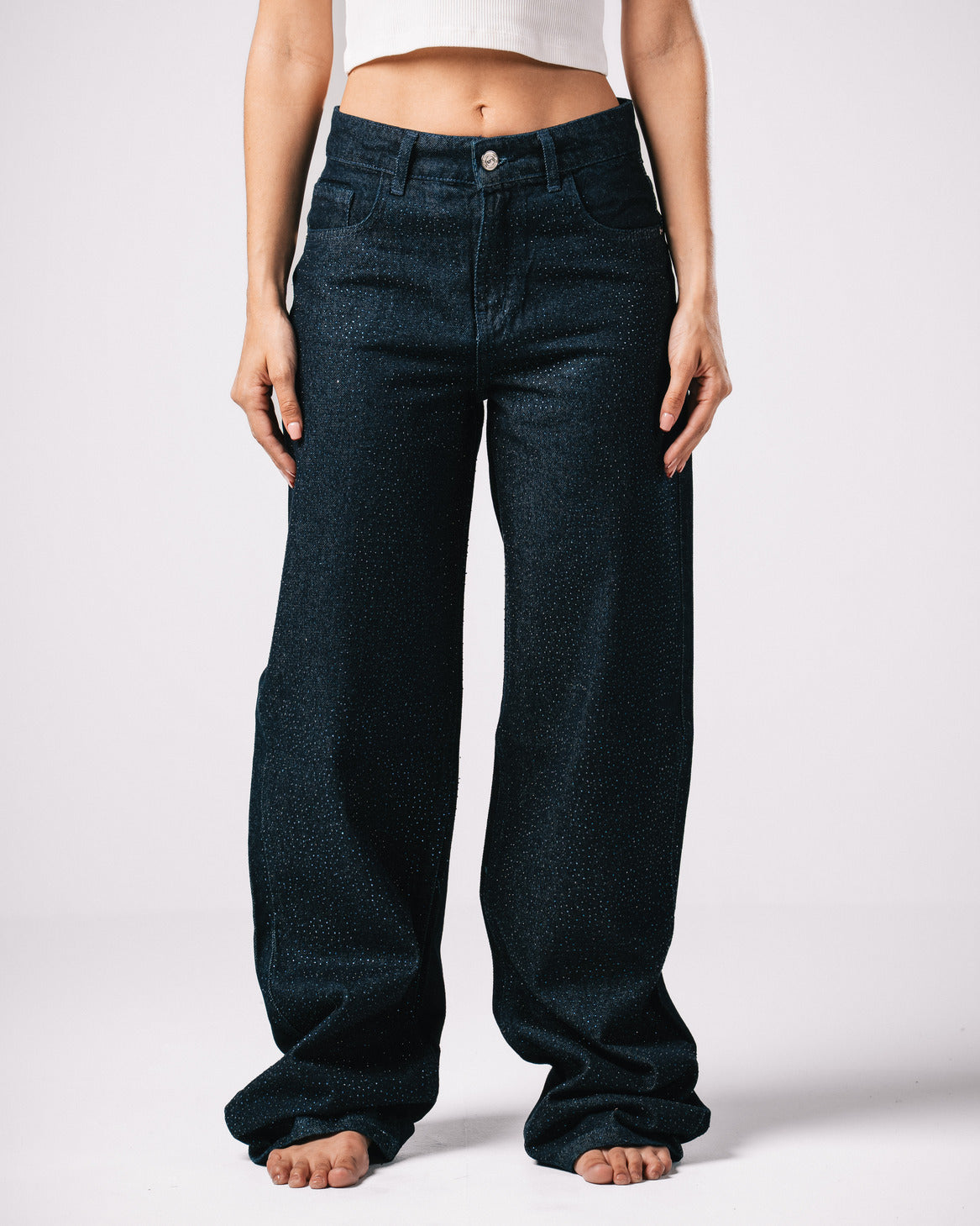 Crafted from premium quality denim, these pants offer durability and comfort, ensuring they’ll be your go-to choice for any occasion. The standout feature is the sparkling bling details, adding a touch of glamour to the timeless denim look.